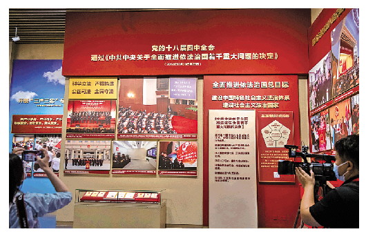 2021年6月25日,媒體記者在中國共產(chǎn)黨歷史展覽館拍攝法治建設成就相關(guān)展板。 法治日報全媒體記者 王建軍 攝