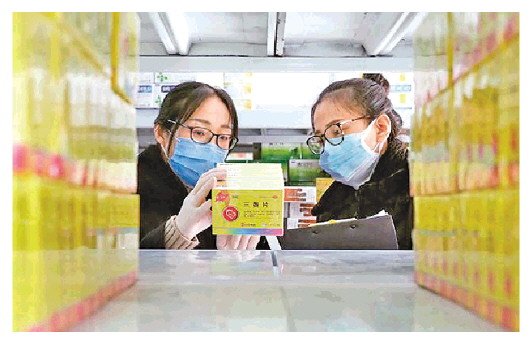 2020年2月6日,山東省無棣縣市場監(jiān)督管理局執(zhí)法人員在一家連鎖藥店對藥品進行監(jiān)督抽檢。 新華社記者 陳子慶 攝