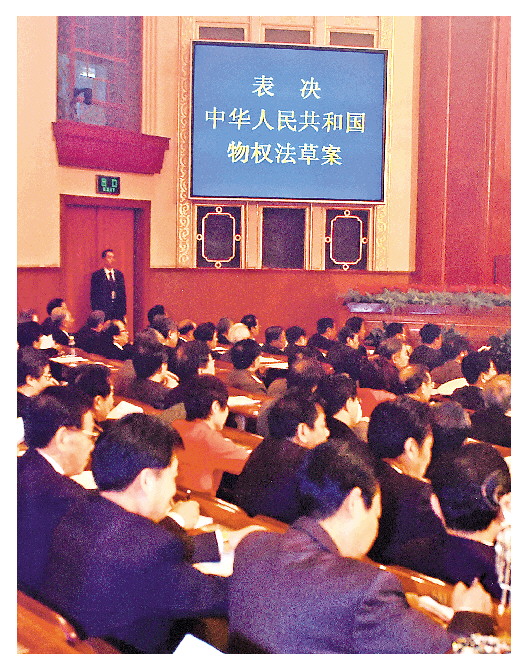 2007年3月,十屆全國人大五次會議通過《中華人民共和國物權(quán)法》,對于堅持和完善國家基本經(jīng)濟(jì)制度、保護(hù)權(quán)利人的物權(quán)、加快構(gòu)建社會主義和諧社會,具有十分重要的意義。(資料圖片)