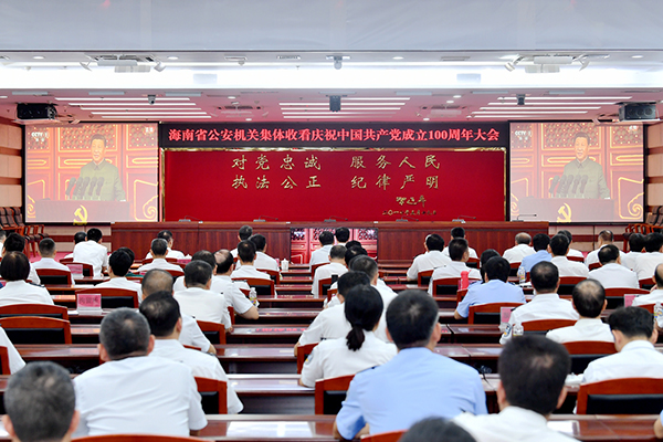 奮斗百年路,啟航新征程。7月1日上午8時(shí),慶祝中國(guó)共產(chǎn)黨成立100周年大會(huì)在北京天安門廣場(chǎng)隆重舉行。海南省公安機(jī)關(guān)在做好各項(xiàng)安保任務(wù)的同時(shí),組織民警集中收聽收看大會(huì)盛況。副省長(zhǎng)、公安廳黨委書記、廳長(zhǎng)閆希軍在省公安廳主會(huì)場(chǎng)收聽收看大會(huì)實(shí)況。
