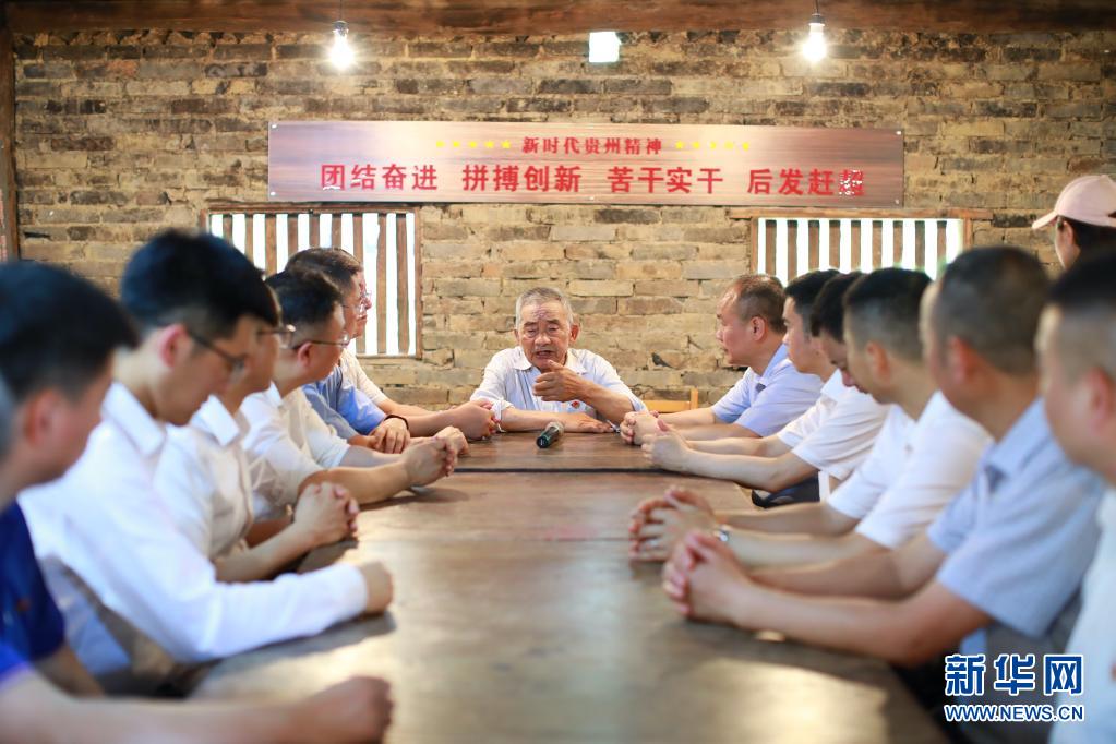 黃大發(fā)為前來參加黨建活動的人們講述修渠故事(6月16日攝)。新華社記者 劉續(xù) 攝