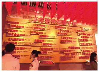 在人民軍隊?wèi)c祝中國共產(chǎn)黨成立100周年主題展覽展廳,有一面紅墻格外引人注意,吸引了不少參觀者駐足觀看。