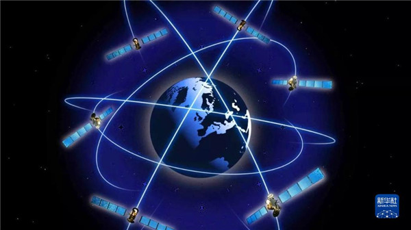 北斗全球組網(wǎng)示意圖(動(dòng)畫(huà)演示)。新華社發(fā)