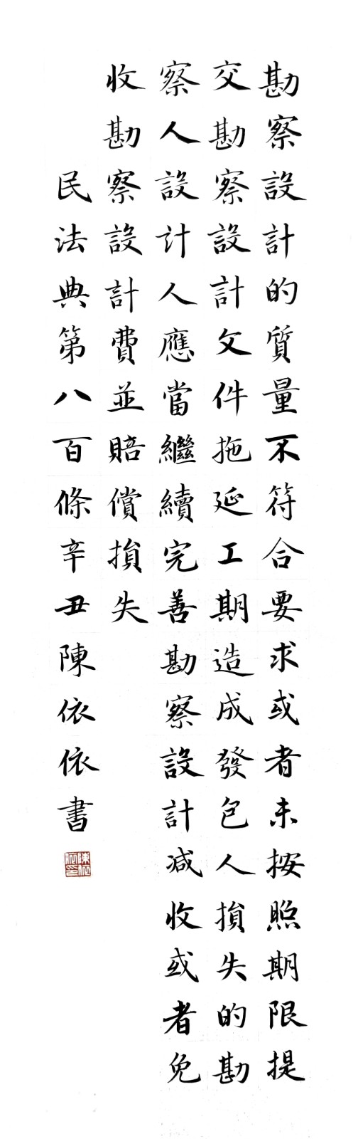 陳依依,福建省書法家協(xié)會(huì)會(huì)員,泉州市書法家協(xié)會(huì)會(huì)員,晉江市書法家協(xié)會(huì)理事,晉江市青年書畫協(xié)會(huì)副秘書長。