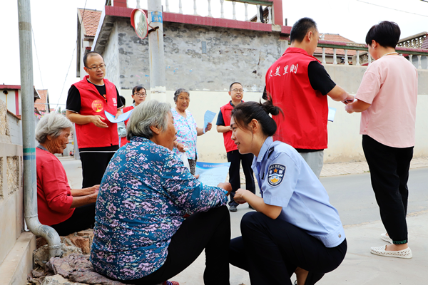 圖為民警入村開(kāi)展防范電信網(wǎng)絡(luò)詐騙犯罪宣傳。