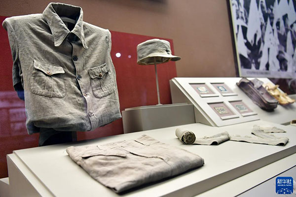這是在位于山西省長治市武鄉(xiāng)縣的八路軍太行紀(jì)念館內(nèi)拍攝的八路軍軍裝(2019年12月20日攝)。新華社記者 曹陽 攝