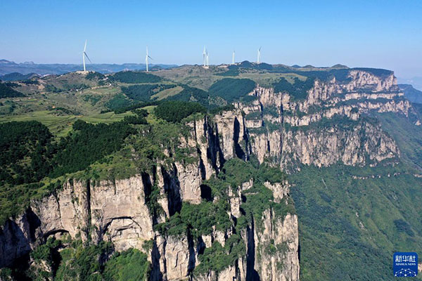 這是2021年9月8日在山西省平順縣玉峽關(guān)鎮(zhèn)拍攝的太行山風(fēng)光(無人機(jī)照片)。新華社記者 詹彥 攝