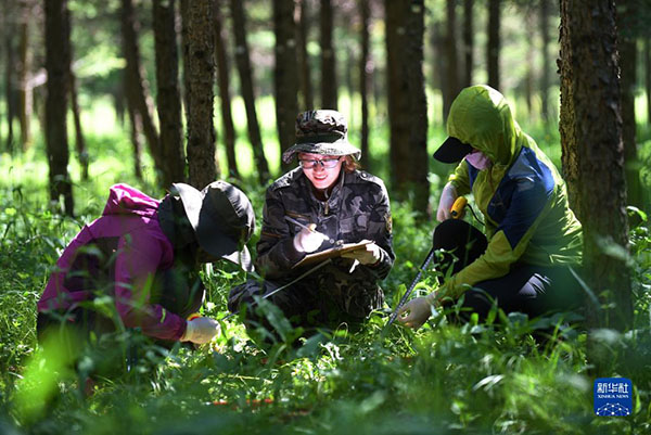工作人員在塞罕壩機(jī)械林場采集數(shù)據(jù)(2017年7月12日攝)。新華社記者 王曉 攝