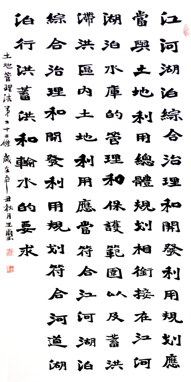 繼1600余位書法家參與書寫《中華人民共和國民法典》全部1260條法條之后,法治日報社聯(lián)合自然資源部法規(guī)司、自然資源部書畫研究會和北京昌平書法家協(xié)會,將筆端對準(zhǔn)土地管理“一法一條例”,即《中華人民共和國土地管理法》和《中華人民共和國土地管理法實(shí)施條例》。
