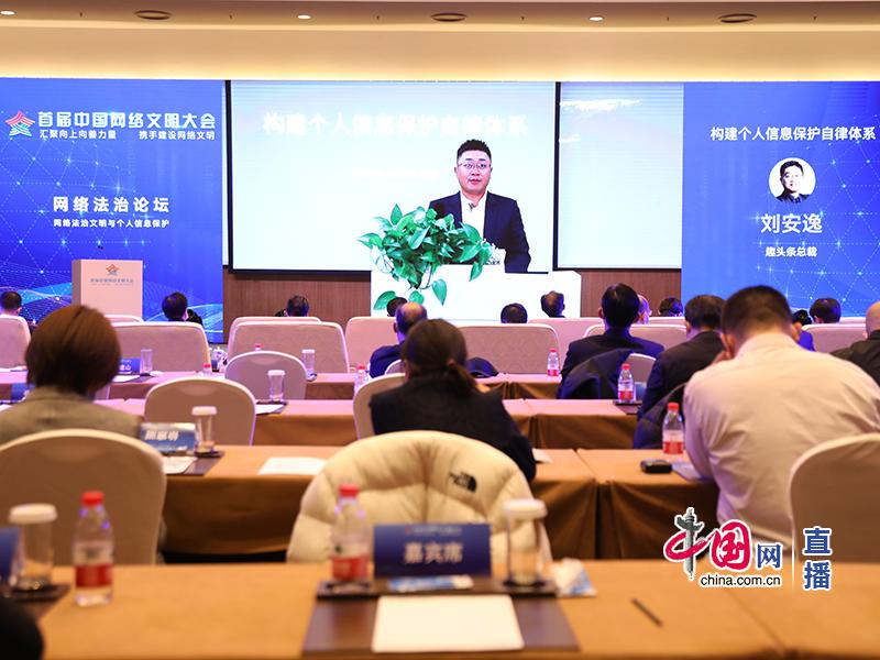 在主旨發(fā)言環(huán)節(jié),趣頭條總裁劉安逸以“構建個人信息保護自律體系”為題進行了發(fā)言交流,以下是發(fā)言內容。