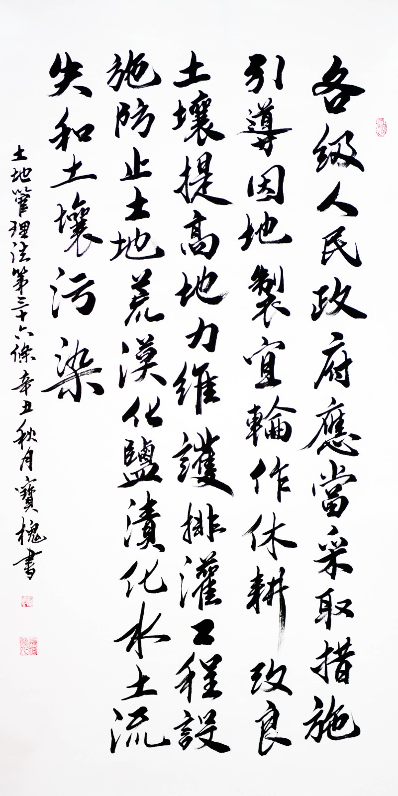 繼1600余位書法家參與書寫《中華人民共和國(guó)民法典》全部1260條法條之后,法治日?qǐng)?bào)社聯(lián)合自然資源部法規(guī)司、自然資源部書畫研究會(huì)和北京昌平書法家協(xié)會(huì),將筆端對(duì)準(zhǔn)土地管理“一法一條例”,即《中華人民共和國(guó)土地管理法》和《中華人民共和國(guó)土地管理法實(shí)施條例》。