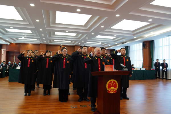 憲法宣誓活動(dòng)現(xiàn)場(chǎng),新任職的院領(lǐng)導(dǎo)班子成員、審判委員會(huì)委員、審判員,崗位調(diào)整的科級(jí)干部,新入額的法官和試用期滿轉(zhuǎn)正人員共計(jì)26名干警,在院黨組書記、院長(zhǎng)周興志領(lǐng)誓下,舉起右手莊嚴(yán)進(jìn)行憲法宣誓。
