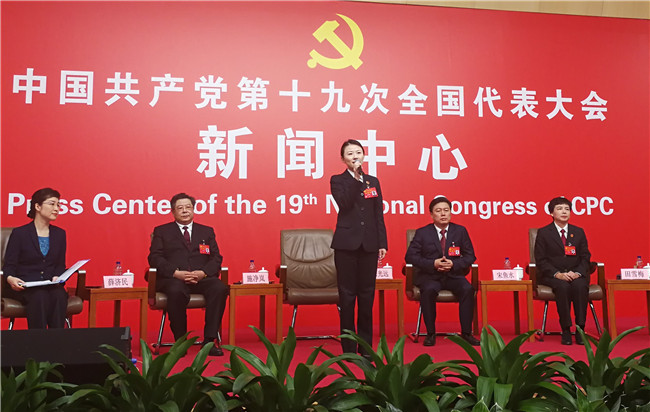 在黨的十九大政法代表媒體集體采訪現(xiàn)場接受采訪