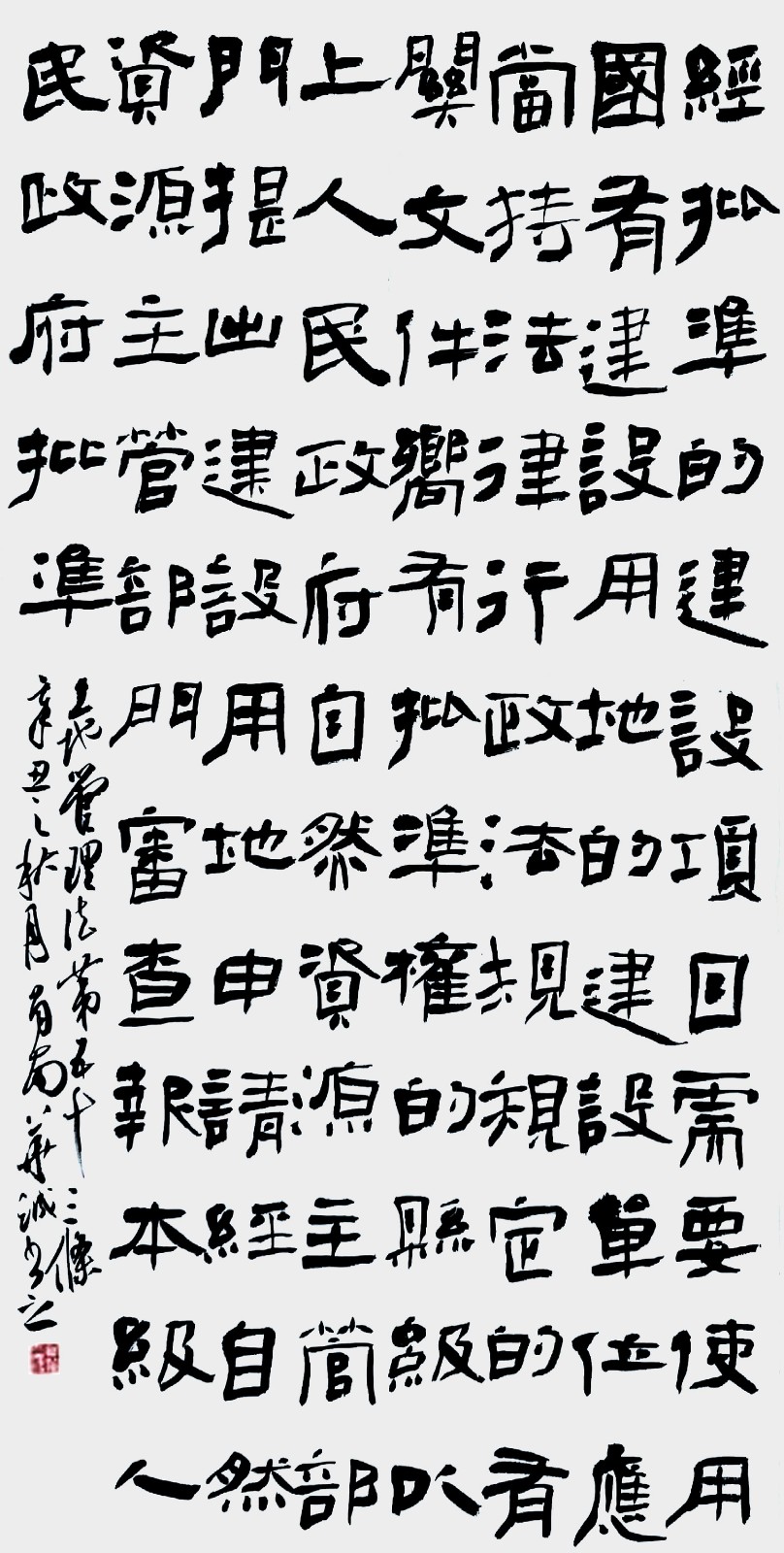 繼1600余位書法家參與書寫《中華人民共和國民法典》全部1260條法條之后,法治日報社聯(lián)合自然資源部法規(guī)司、自然資源部書畫研究會和北京昌平書法家協(xié)會,將筆端對準土地管理“一法一條例”,即《中華人民共和國土地管理法》和《中華人民共和國土地管理法實施條例》。