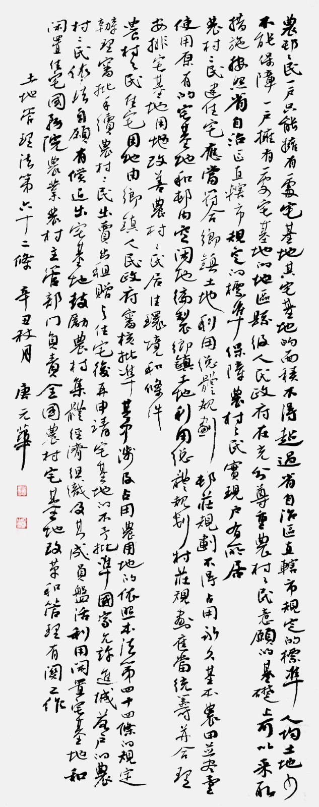 繼1600余位書法家參與書寫《中華人民共和國民法典》全部1260條法條之后,法治日報社聯(lián)合自然資源部法規(guī)司、自然資源部書畫研究會和北京昌平書法家協(xié)會,將筆端對準土地管理“一法一條例”,即《中華人民共和國土地管理法》和《中華人民共和國土地管理法實施條例》。