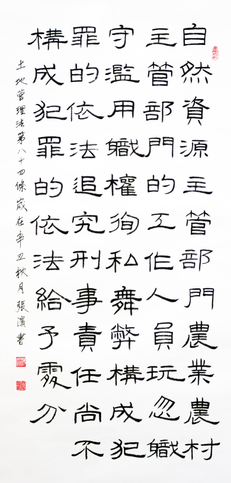 繼1600余位書法家參與書寫《中華人民共和國民法典》全部1260條法條之后,法治日報社聯合自然資源部法規(guī)司、自然資源部書畫研究會和北京昌平書法家協會,將筆端對準土地管理“一法一條例”,即《中華人民共和國土地管理法》和《中華人民共和國土地管理法實施條例》。