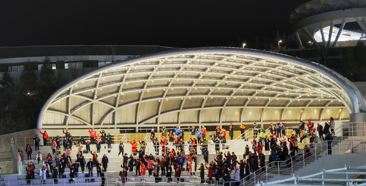 在北京2022年冬奧會和冬殘奧會延慶賽區(qū)核心區(qū)南區(qū)東部,延慶冬奧村(冬殘奧村)依山而建。11日上午,約360人組成的30個代表團和1個觀察團陸續(xù)抵達延慶冬奧村(冬殘奧村),開展“全要素”運行測試。