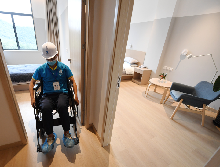 8月20日,工作人員展示北京冬奧會延慶冬奧村無障礙樣板間。新華社記者 張晨霖 攝