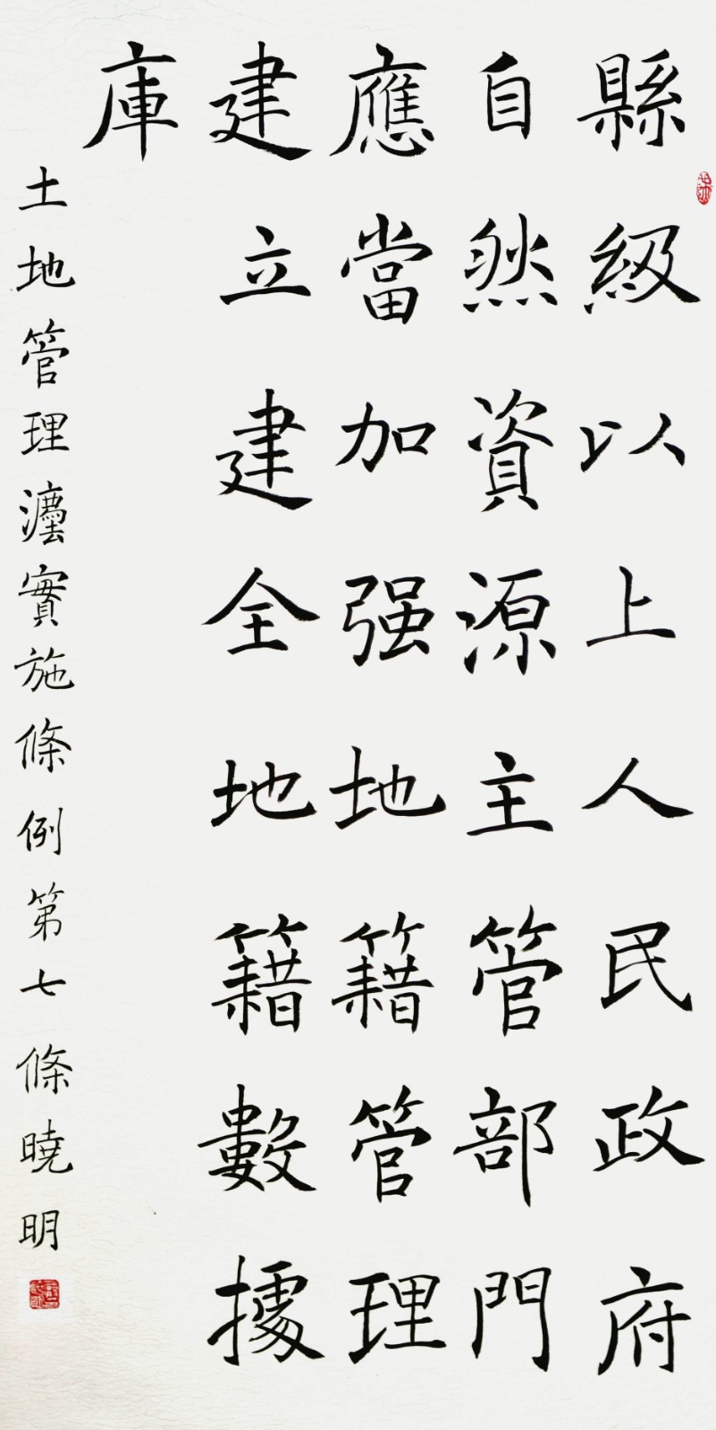 繼1600余位書法家參與書寫《中華人民共和國民法典》全部1260條法條之后,法治日?qǐng)?bào)社聯(lián)合自然資源部法規(guī)司、自然資源部書畫研究會(huì)和北京昌平書法家協(xié)會(huì),將筆端對(duì)準(zhǔn)土地管理“一法一條例”,即《中華人民共和國土地管理法》和《中華人民共和國土地管理法實(shí)施條例》。