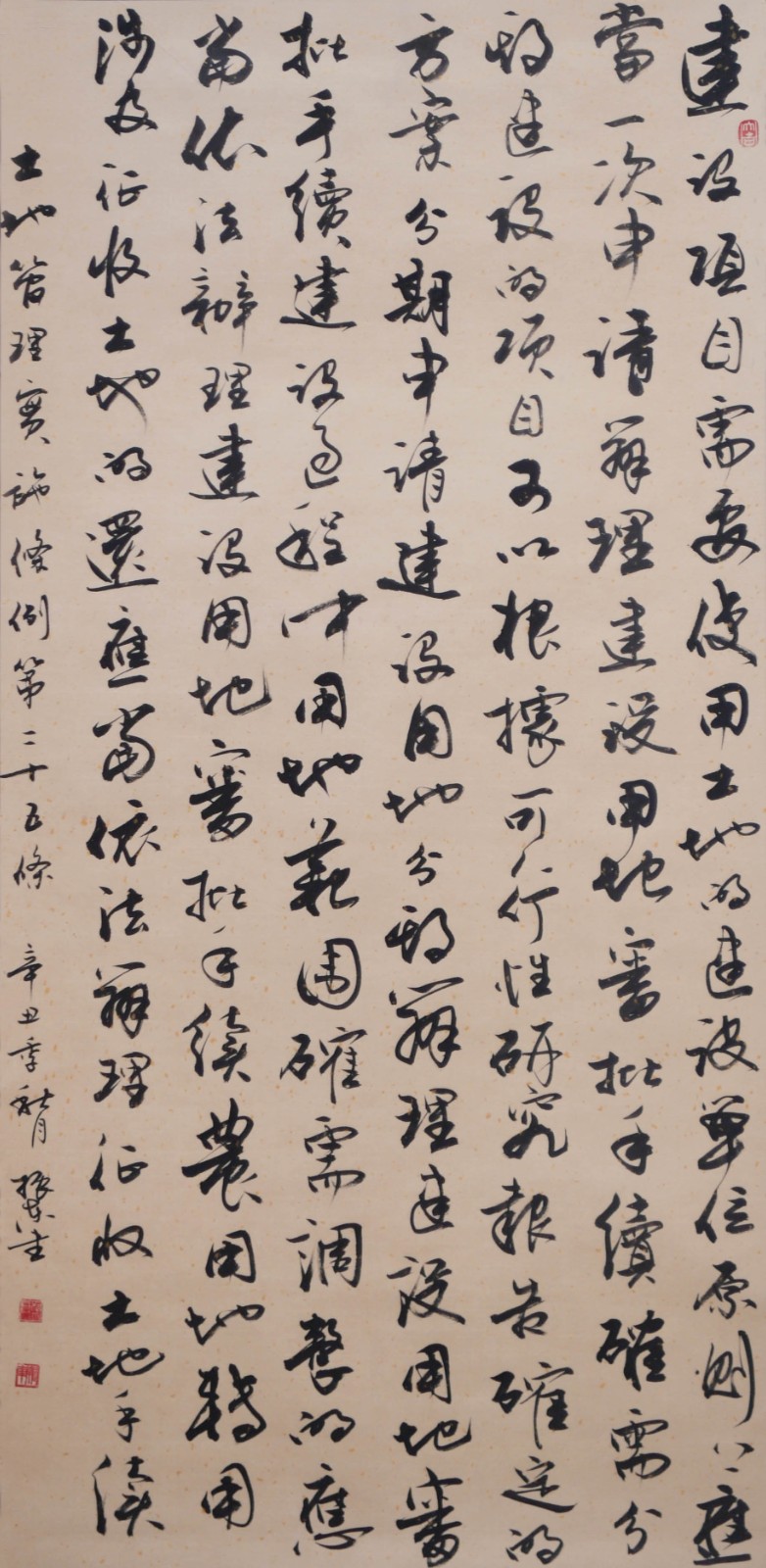 繼1600余位書(shū)法家參與書(shū)寫(xiě)《中華人民共和國(guó)民法典》全部1260條法條之后,法治日?qǐng)?bào)社聯(lián)合自然資源部法規(guī)司、自然資源部書(shū)畫(huà)研究會(huì)和北京昌平書(shū)法家協(xié)會(huì),將筆端對(duì)準(zhǔn)土地管理“一法一條例”,即《中華人民共和國(guó)土地管理法》和《中華人民共和國(guó)土地管理法實(shí)施條例》。