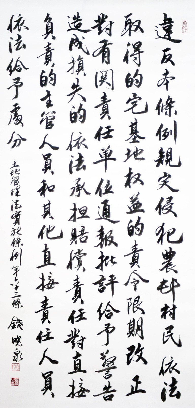 繼1600余位書法家參與書寫《中華人民共和國(guó)民法典》全部1260條法條之后,法治日?qǐng)?bào)社聯(lián)合自然資源部法規(guī)司、自然資源部書畫研究會(huì)和北京昌平書法家協(xié)會(huì),將筆端對(duì)準(zhǔn)土地管理“一法一條例”,即《中華人民共和國(guó)土地管理法》和《中華人民共和國(guó)土地管理法實(shí)施條例》。