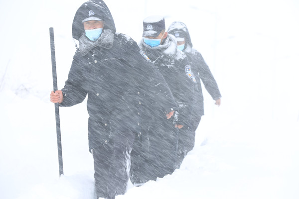 “雖然風(fēng)雪大且天氣寒冷,但我們作為新時(shí)代移民管理警察能幫助到群眾就覺(jué)得心里很暖”。移民管理警察辦公室主任米瑪次仁說(shuō)。他作為處室隊(duì)負(fù)責(zé)人主動(dòng)請(qǐng)纓帶隊(duì)執(zhí)行巡邏踏查任務(wù)。這次邊境巡邏踏查任務(wù)是該站移民管理警察們面對(duì)80公分積雪挑戰(zhàn)10余公里邊境線,原本沿途邊境地形錯(cuò)綜復(fù)雜,風(fēng)雪交加的天氣無(wú)疑更是雪上加霜,給巡邏踏查帶來(lái)了極大困難。保衛(wèi)邊境和諧安寧,守護(hù)邊境群眾生命財(cái)產(chǎn)安全是每一名移民管理警察的初心使命,面對(duì)困難,移民管理警察們愈加堅(jiān)強(qiáng)。