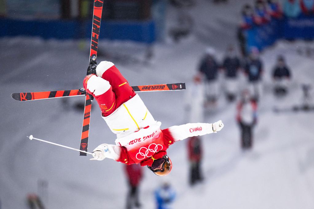 2月3日,加拿大選手米卡埃爾·金斯伯里在北京冬奧會(huì)自由式滑雪男子雪上技巧資格賽第1輪比賽中。新華社記者 胡虎虎 攝
