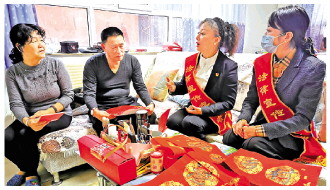 康妍宣和同事們一起,將帶來(lái)的憲法、民法典讀本及法治春聯(lián)遞到村民手中。隨后,他們結(jié)合群眾關(guān)心的借貸、婚姻、繼承等話題,把法言法語(yǔ)變成大白話,用群眾身邊的事情舉例,講道理、說(shuō)法理,講解了民間借貸、離婚冷靜期、夫妻共同債務(wù)等法律知識(shí)。
