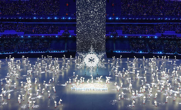 2月4日晚,第二十四屆冬季奧林匹克運(yùn)動(dòng)會(huì)開幕式上的“雪花”環(huán)節(jié)。新華社記者楊磊攝
