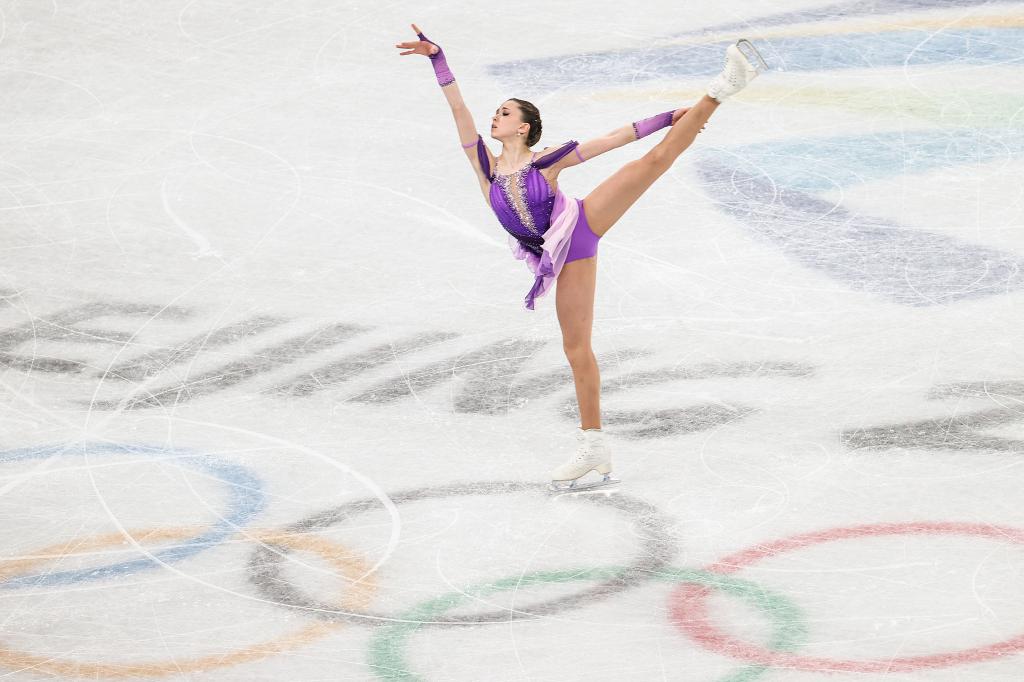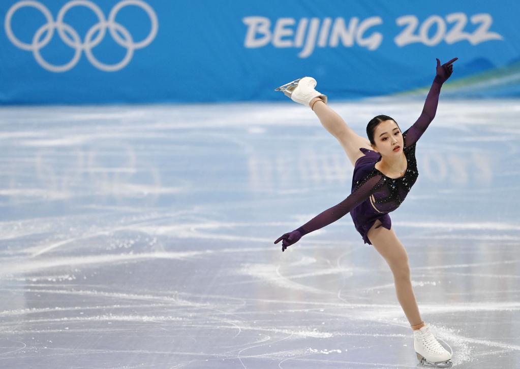 2月6日,俄羅斯奧委會選手卡米拉·瓦利耶娃在比賽中。新華社記者張玉薇攝
