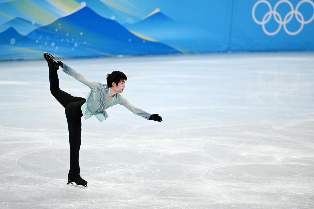 2月8日,中國選手金博洋在男單短節(jié)目比賽中。新華社記者李一博攝