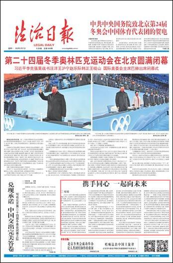 北京冬奧會(huì)為中國(guó)發(fā)展提供了新機(jī)遇,也為世界貢獻(xiàn)了更多可能。“一起向未來”是北京冬奧會(huì)的愿景,簡(jiǎn)潔凝練的表述中蘊(yùn)含著博大智慧和深厚情懷,發(fā)出了構(gòu)建人類命運(yùn)共同體的中國(guó)倡議。各國(guó)運(yùn)動(dòng)員在賽場(chǎng)上,呈現(xiàn)給世界的不僅有挑戰(zhàn)自我、突破極限的拼搏精神,還有相互支持、彼此成就的美好友誼。在對(duì)手比賽失利后主動(dòng)安慰、成功后真誠(chéng)擁抱祝福……一幕幕心手相連、情意相牽的動(dòng)人場(chǎng)景,在瞬間定格成為永恒。北京冬奧會(huì)以全球共通的體育語言和體育精神,積極踐行了“更快、更高、更強(qiáng)——更團(tuán)結(jié)”的奧林匹克格言,生動(dòng)地詮釋著人類命運(yùn)共同體的理念,向全世界傳遞出明確信息:奧林匹克精神是人類團(tuán)結(jié)的燈塔,任何國(guó)家、民族、宗教的人民都可以超越分歧,實(shí)現(xiàn)團(tuán)結(jié)與合作。
