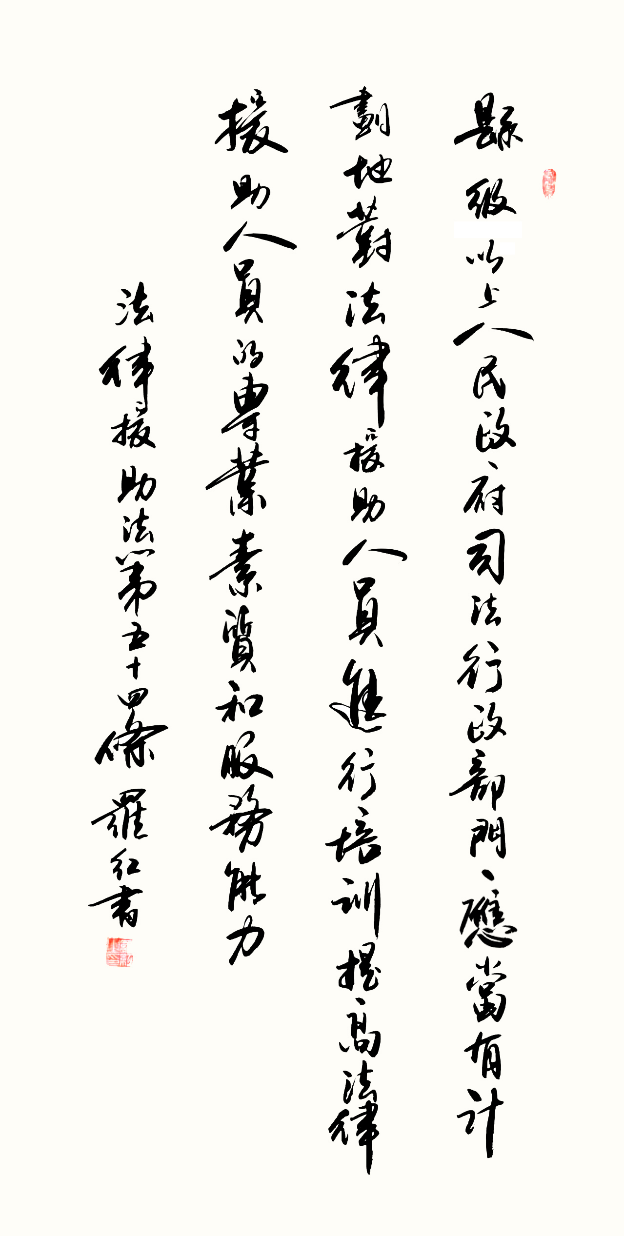 “書(shū)·法”活動(dòng)旨在為創(chuàng)新法治宣傳教育,多開(kāi)一點(diǎn)腦洞、多花一點(diǎn)心思、多出一點(diǎn)力量、多做一點(diǎn)貢獻(xiàn),引領(lǐng)和推動(dòng)更多的人拿起筆來(lái)學(xué)法、寫(xiě)法,在不斷“書(shū)·法”過(guò)程中,提升自身的法治素養(yǎng),在全社會(huì)弘揚(yáng)法治精神。