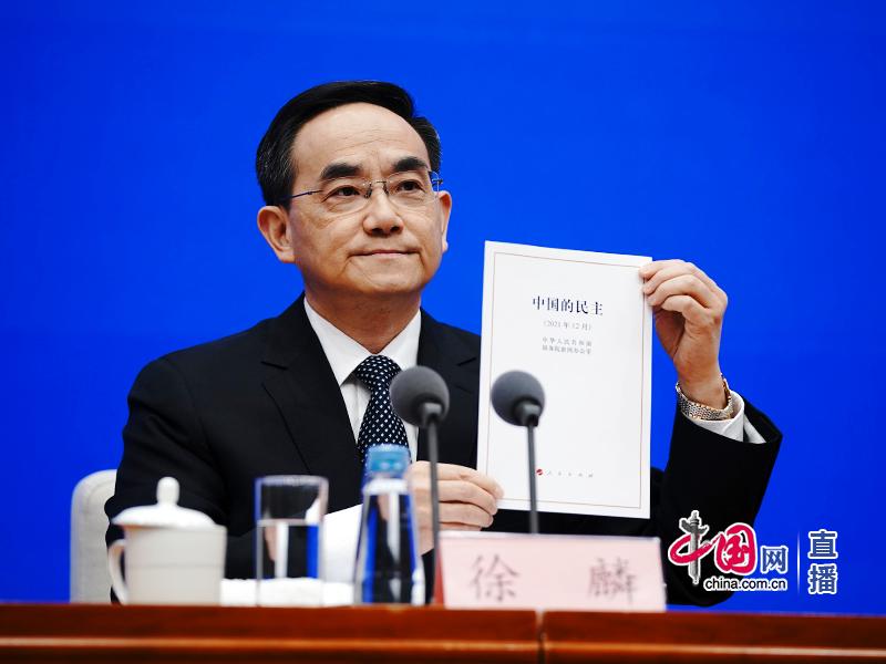12月4日,國務(wù)院新聞辦公室就《中國的民主》白皮書舉行新聞發(fā)布會,中央宣傳部副部長、國務(wù)院新聞辦公室主任徐麟介紹相關(guān)情況。 中國網(wǎng) 鄭亮 攝