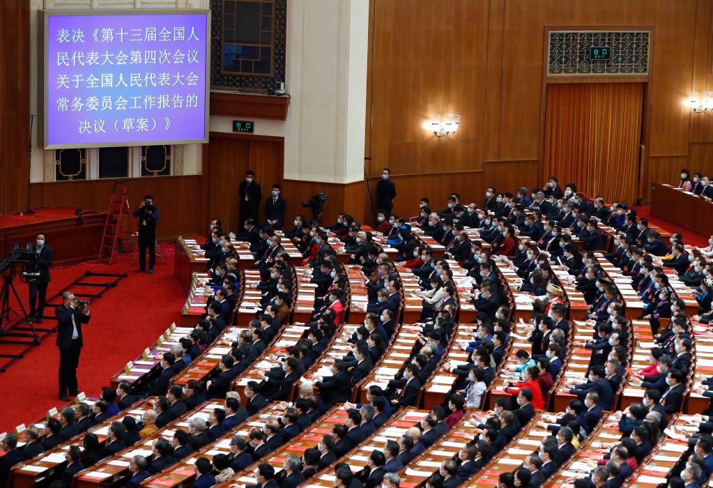 2021年3月11日,第十三屆全國(guó)人民代表大會(huì)第四次會(huì)議在北京人民大會(huì)堂舉行閉幕會(huì)。(新華社記者張玉薇攝)