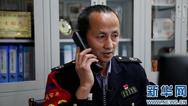 馮冰在工作室接聽電話。新華網(wǎng) 吳銀冰 攝