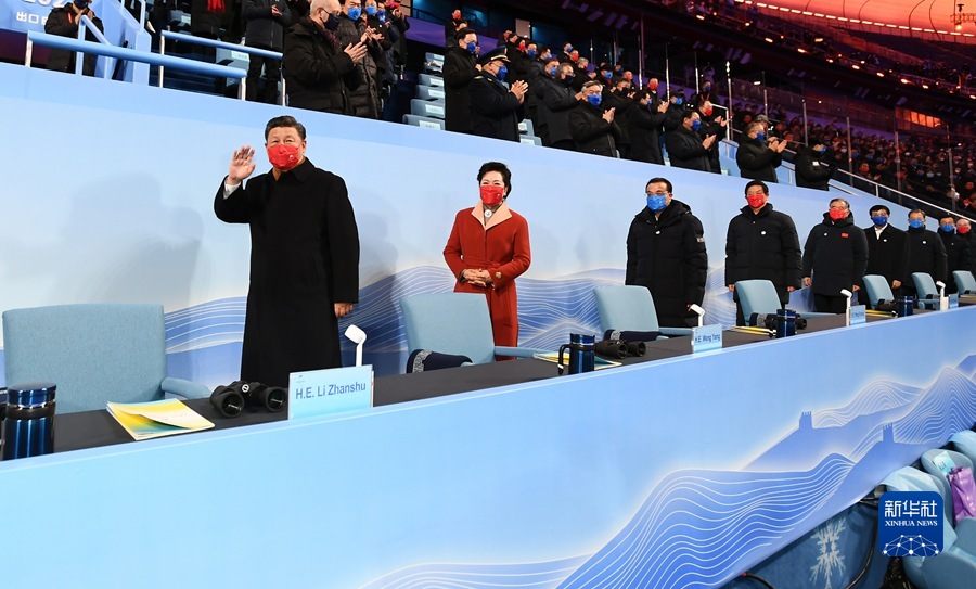 3月4日晚,北京2022年冬殘奧會開幕式在國家體育場隆重舉行。這是國家主席習(xí)近平同國際殘奧委會主席帕森斯在主席臺上向大家揮手致意。新華社記者 李學(xué)仁 攝