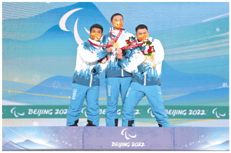 本報(bào)北京3月7日訊 記者侯建斌 徐偉倫 今天,北京冬殘奧會(huì)單板滑雪障礙追逐比賽在云頂滑雪公園進(jìn)行了4個(gè)項(xiàng)目的爭(zhēng)奪。中國選手紀(jì)立家、王鵬耀、朱永鋼包攬了男子障礙追逐UL級(jí)比賽金銀銅牌,武中偉在男子障礙追逐LL1級(jí)比賽中獲得銅牌,實(shí)現(xiàn)了中國隊(duì)在冬殘奧會(huì)該項(xiàng)目上獎(jiǎng)牌“零”的突破。