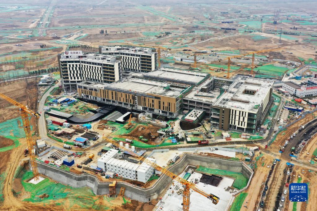 這是3月29日拍攝的雄安新區(qū)首都醫(yī)科大學宣武醫(yī)院雄安院區(qū)項目建設(shè)施工現(xiàn)場(無人機照片)。新華社記者 朱旭東 攝