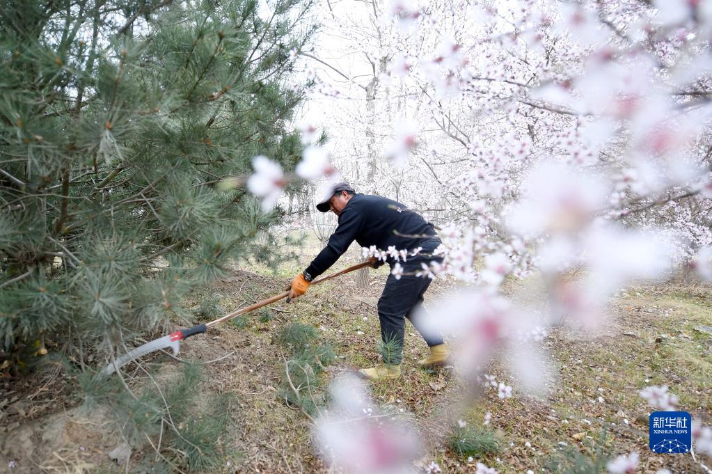 工作人員在雄安新區(qū)千年秀林修剪樹木(3月29日攝)。新華社記者 駱學峰 攝