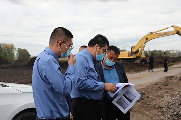 圖為2021年9月26日,紅興隆檢察院公益訴訟部門干警實地查看轄區(qū)內(nèi)某煤礦塌陷地集成復墾區(qū)施工現(xiàn)場。 趙志超 攝
