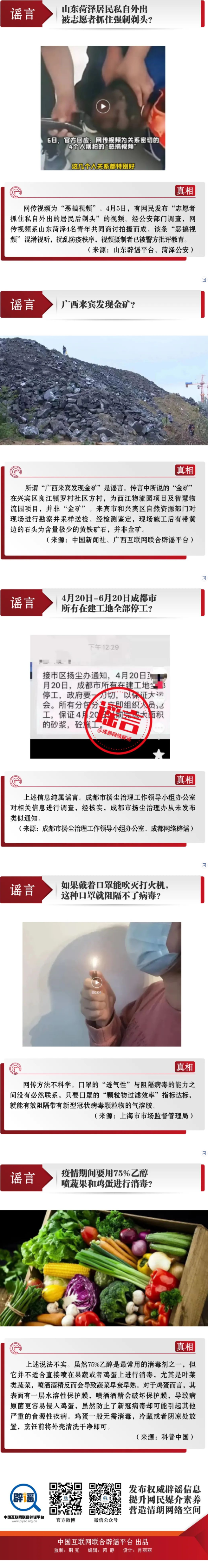 打擊網(wǎng)絡(luò)謠言 共建清朗家園 中國(guó)互聯(lián)網(wǎng)聯(lián)合辟謠平臺(tái)4月辟謠榜