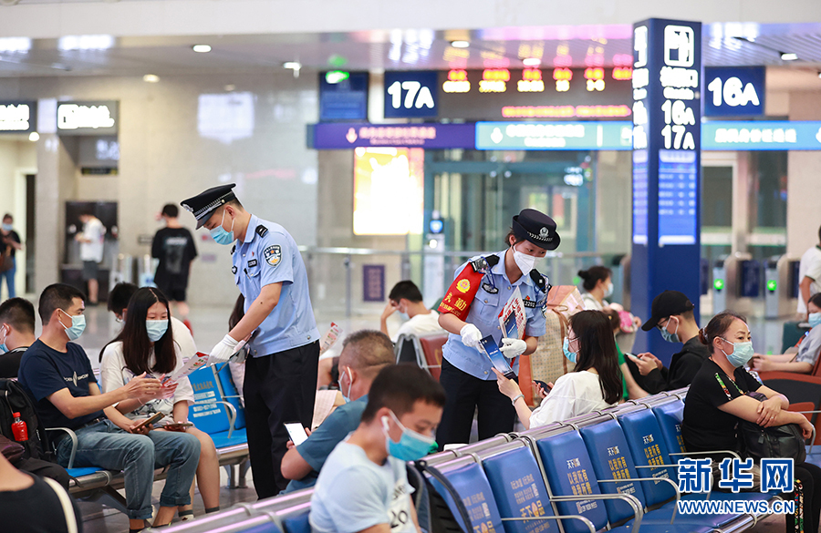 6月23日,民警在重慶北站候車廳向旅客發(fā)放禁毒宣傳資料。新華網(wǎng) 發(fā)