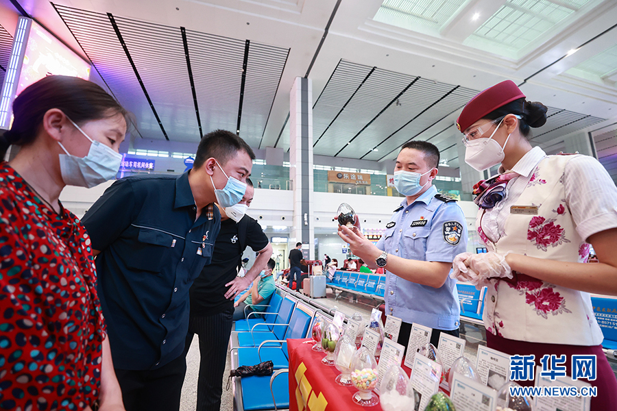 6月23日,民警在重慶北站候車廳向旅客講解拒毒小妙招。新華網(wǎng) 發(fā)