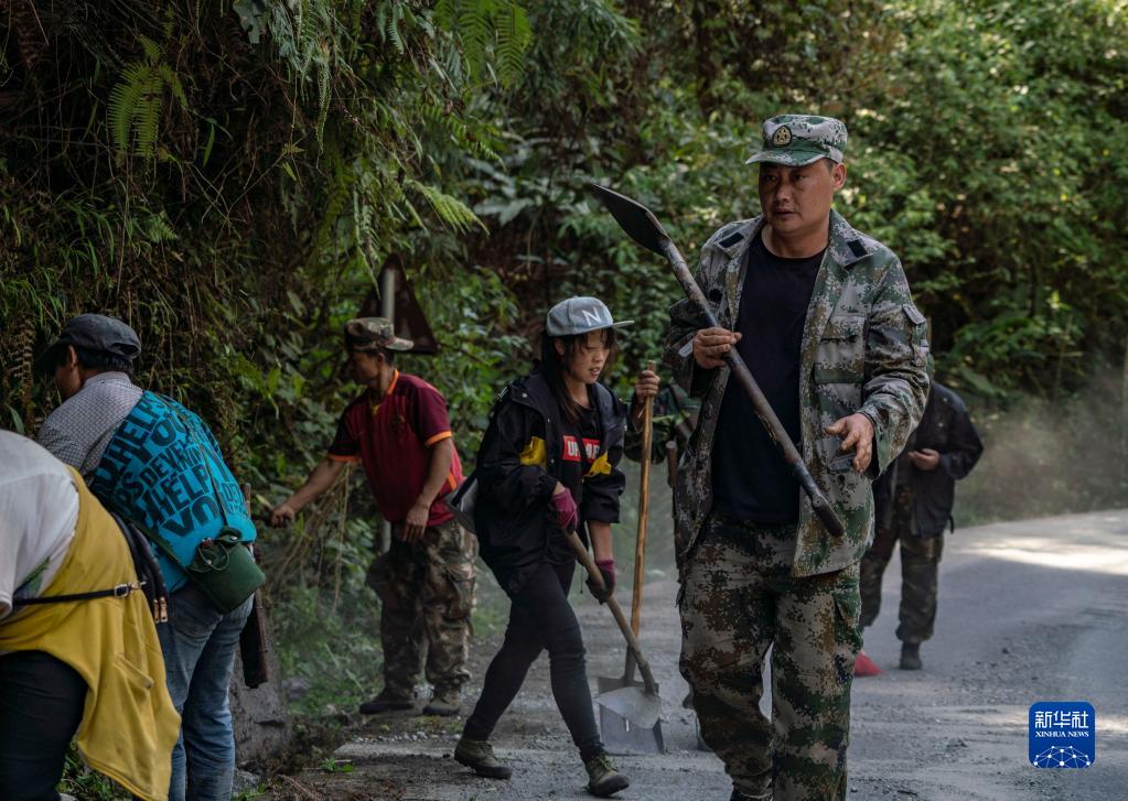 在云南省貢山縣獨(dú)龍江鄉(xiāng)巴坡村,王世榮(右一)帶領(lǐng)鄉(xiāng)親們一起勞動(dòng)(2019年4月25日攝)。新華社記者 江文耀 攝