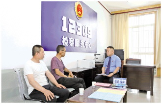 圖為王文喜(右一)在檢察服務(wù)中心接待來(lái)訪群眾。 本報(bào)通訊員 周潤(rùn)霞 攝