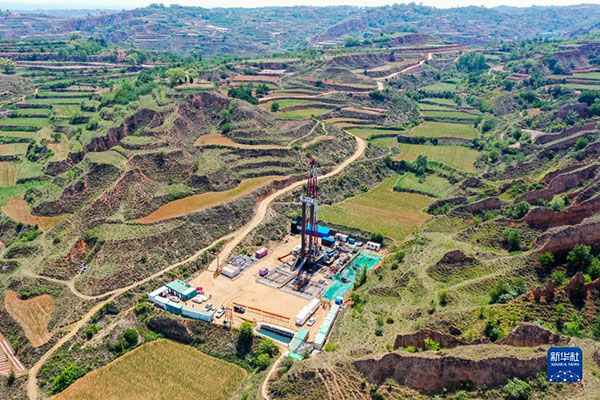 這是在山西省長治市武鄉(xiāng)縣拍攝的一處煤層氣鉆井現(xiàn)場(chǎng)(無人機(jī)照片,2021年6月22日攝)。新華社記者 曹陽 攝
