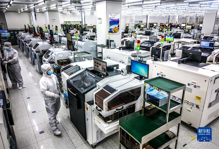 2022年5月26日,在安徽省合肥經(jīng)濟(jì)技術(shù)開(kāi)發(fā)區(qū)的合肥通富微電子有限公司,員工在裝片生產(chǎn)線上作業(yè)。新華社發(fā)(解琛 攝)