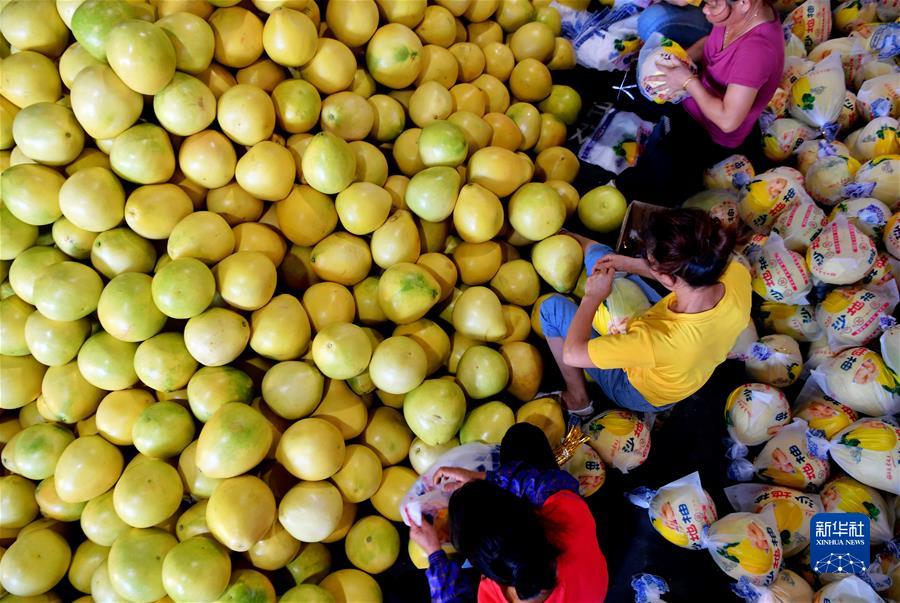 在福建省漳州市平和縣的一家蜜柚加工廠,工人在包裝蜜柚(2020年9月17日攝)。近年來,平和縣出臺鼓勵扶持蜜柚產(chǎn)業(yè)轉(zhuǎn)型提升的一系列措施,走出了一條依靠蜜柚富民強縣的道路。新華社記者 魏培全 攝