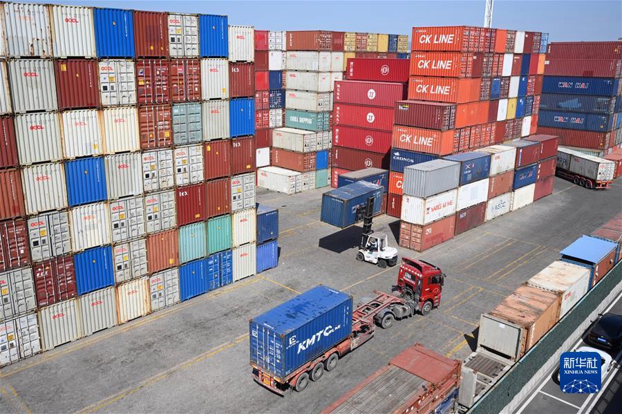 在廈門自貿(mào)片區(qū)現(xiàn)代碼頭,車輛在轉(zhuǎn)運集裝箱(2020年11月10日攝)。新華社記者 姜克紅 攝